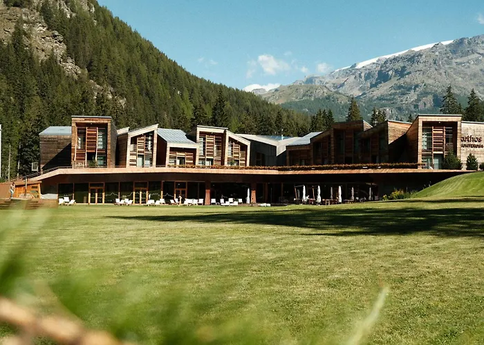 Aethos Hotel Monterosa은 샴폴루크의 스키 지역에 위치해 있으며 프라케이-알페 치아르체리오 케이블카에서 14분 도보 거리입니다.